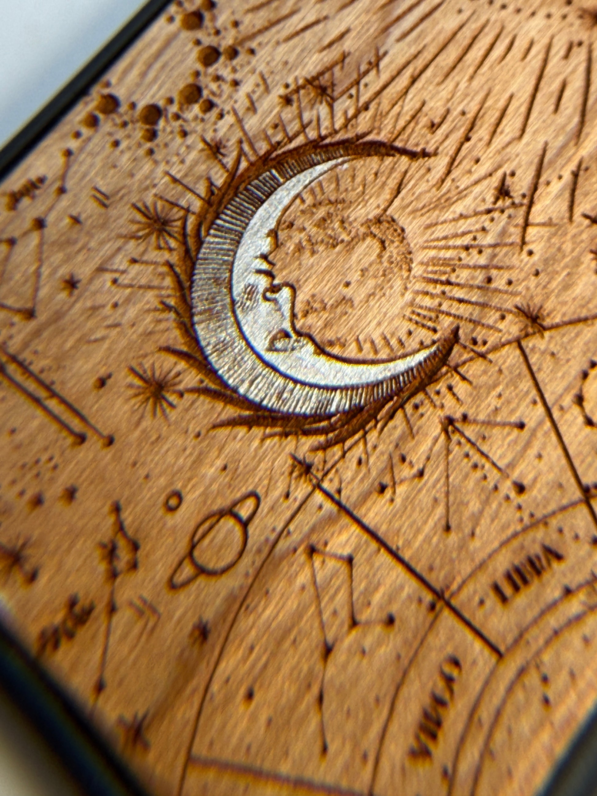 • Precision Wood Engraving: Our laser-etched designs are burned deep into the wood, creating a tactile texture that won't fade, peel, or blur.